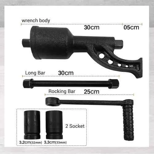 The MECRAAF 1:64 Ratio Vanadium & Alloy Steel Labour Saving Wrench is crafted from high-quality vanadium and alloy steel for durability and strength. Featuring 32mm & 33mm sockets, it provides torque amplification, making tough jobs easier. The 1:64 ratio ensures efficient torque application, while the anti-slip handle provides comfort and control during use. Perfect for heavy-duty tasks, this wrench also includes a brace rod, drive sockets, and a convenient carry box for easy storage. Package Contents : 1 Pc Durable Brace Rod, 2 Pcs Drive Socket, 1 Pc Anti-Slip Handle, 1 Pc Long Bar with Carry Box