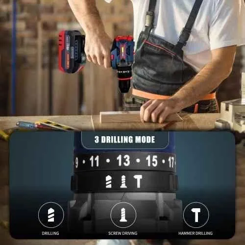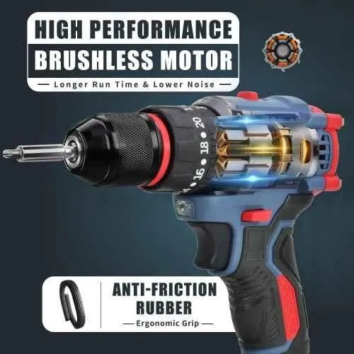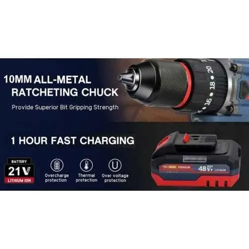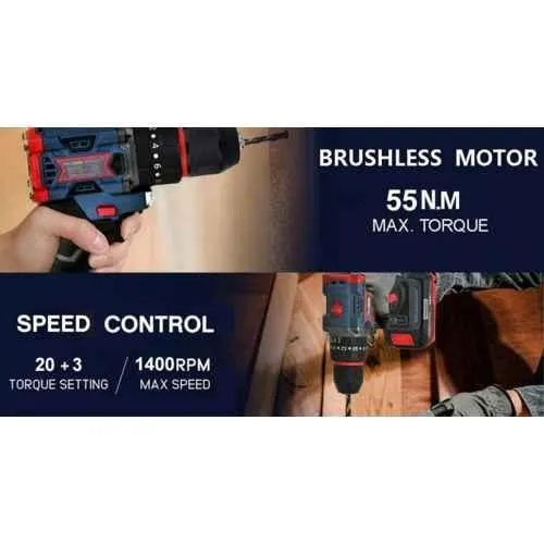 The MECRAAF 21V 48Vf 10mm Blue Cordless Drill offers a no-load speed of 0-550 and 1400 rpm for various drilling tasks. With a 10mm chuck size and 20+3 torque settings, it provides precise control over different materials. The 48Vf battery offers long-lasting performance, and the LED work light ensures visibility in dimly lit areas. The drill is equipped with two-speed options and a lithium-ion battery, ensuring optimal performance for any project, whether at home or on the job site. Package Contents : 1 Pc Brushless Drill, 1 Pc Fast Charger, 2 Pcs 21V 1.5Ah Battery & 1 Pc Equipment Carry Case