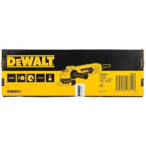 The Dewalt DW801 4 Inch 850W Angle Grinder is a compact and efficient tool designed for grinding, sanding, sharpening, and polishing. With a wheel diameter of 4 inches and a no-load speed of 11, 000 rpm, it can handle various tasks like metal blade sharpening, rust removal, and mortar removal. This grinder's 850W motor ensures reliable performance, while its ergonomic design provides comfort and control during use. It's a top choice for both professionals and hobbyists. It includes Angle grinder body, spanner, wheel guard, handle (no wheel in the box)
