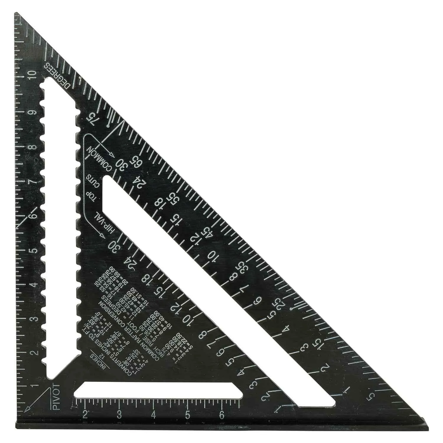 The Dewalt 300mm Aluminium Rafter Layout Square (DWHT46032-0) is built for precision and durability in construction and woodworking applications. Made from high-quality aluminum, this square ensures long-lasting performance. The black finish offers a professional appearance and enhances visibility for easy measurements. This square is designed for laying out rafter angles and making accurate cuts, making it an essential tool for carpenters, builders, and DIY enthusiasts. Its lightweight design ensures easy handling without compromising on strength.