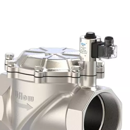 Uflow PCN-BI Stainless Steel Pilot Operated 2/2 Way Solenoid Valve, Screwed End (NC), 4 Inch, 24 V AC is designed for precise control of air, water, gas, and oil in industrial and water treatment applications.
