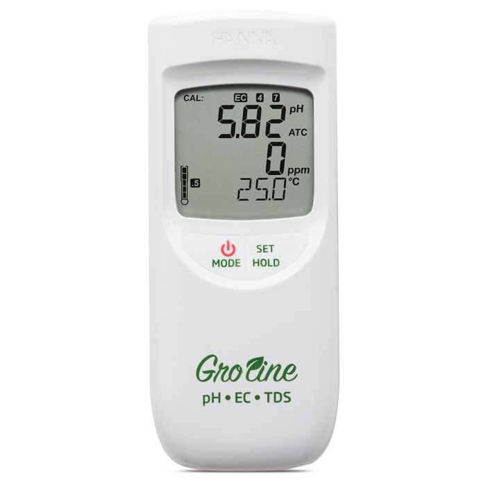 The HI9814 is a portable, waterproof multiparameter meter designed for hydroponics, aquaponics, and greenhouse applications. It accurately measures pH, electrical conductivity (EC), total dissolved solids (TDS), and temperature in nutrient solutions, helping ensure optimal plant health and growth.