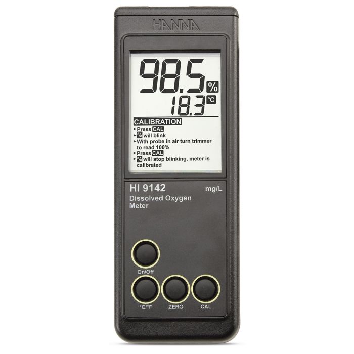 HI9142 Portable Dissolved Oxygen Meter is a robust water analysis instrument designed for accurate measurement of dissolved oxygen in laboratories, wastewater treatment, aquaculture, field environments, and industrial processes. This waterproof and portable unit utilizes a Ross and Clark polarographic method and includes a platinum cathode and silver anode, providing high accuracy for reliable oxygen determination.