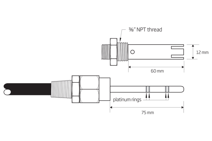 The four-ring platinum electrode design ensures exceptional accuracy and eliminates polarization errors, making the probe suitable for continuous monitoring in water treatment, chemical manufacturing, food and beverage production, and pharmaceutical environments. The durable PEI body offers excellent mechanical strength and is resistant to corrosion by a wide range of chemicals, ensuring reliable long-term operation.