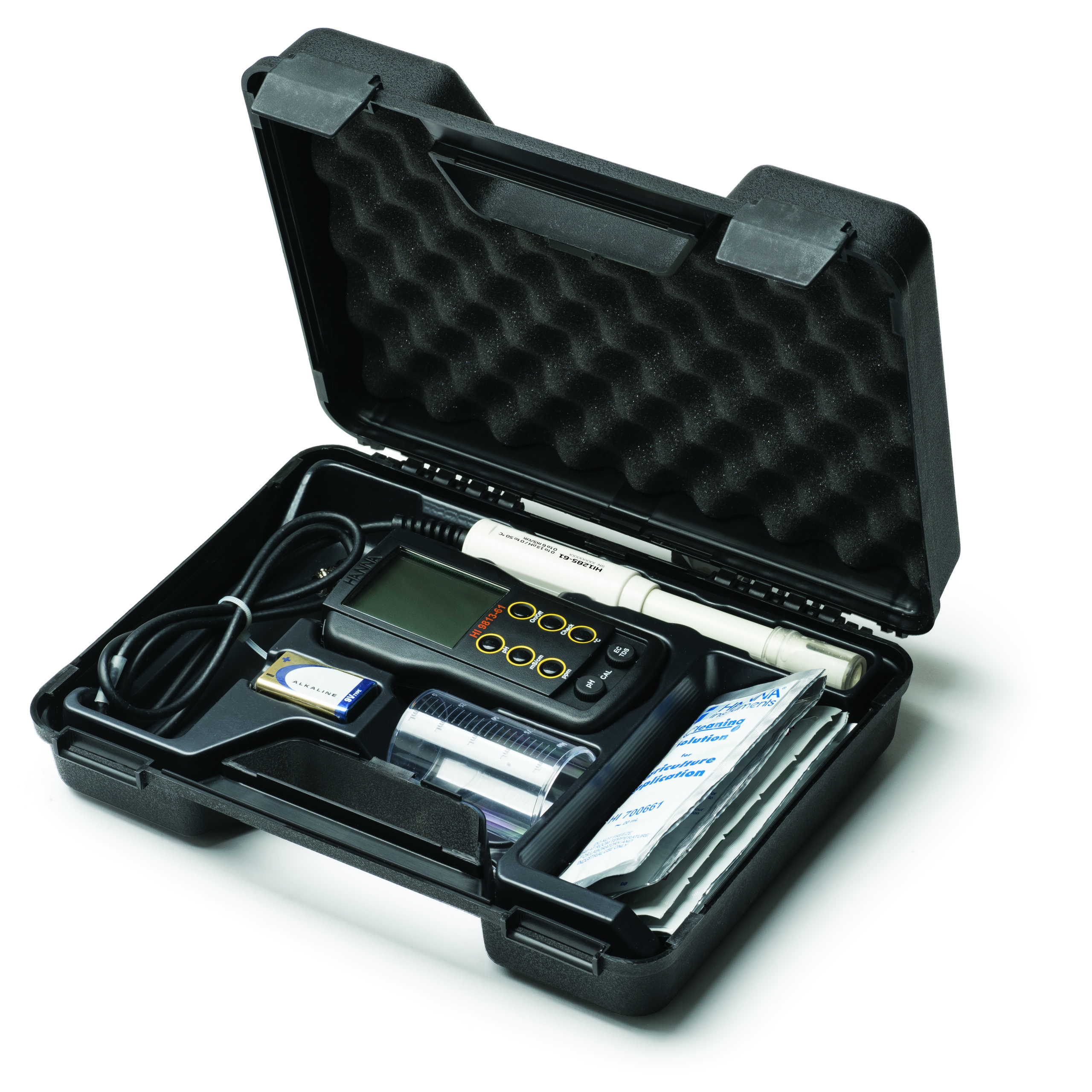 The HI9813-61 Portable pH/EC/TDS/Temperature Meter is a high-precision, multi-parameter instrument engineered for field and laboratory applications. It is ideally suited for agricultural, greenhouse, and hydroponic operations, and delivers reliable measurements for pH, electrical conductivity (EC), total dissolved solids (TDS), and temperature using a single, easy-to-handle probe. This meter enhances productivity through its CAL Check™ function, which continuously diagnoses the state of the probe and alerts the user when recalibration or replacement is required.